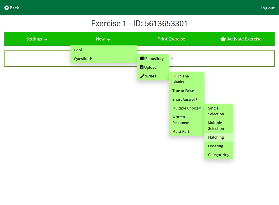 The answers table is used to create the answers that students will match. Answers cannot be empty when saving a Matching Question. The table is sortable. The order of answers can be changed by clicking and dragging the bars icon next to the answer input.