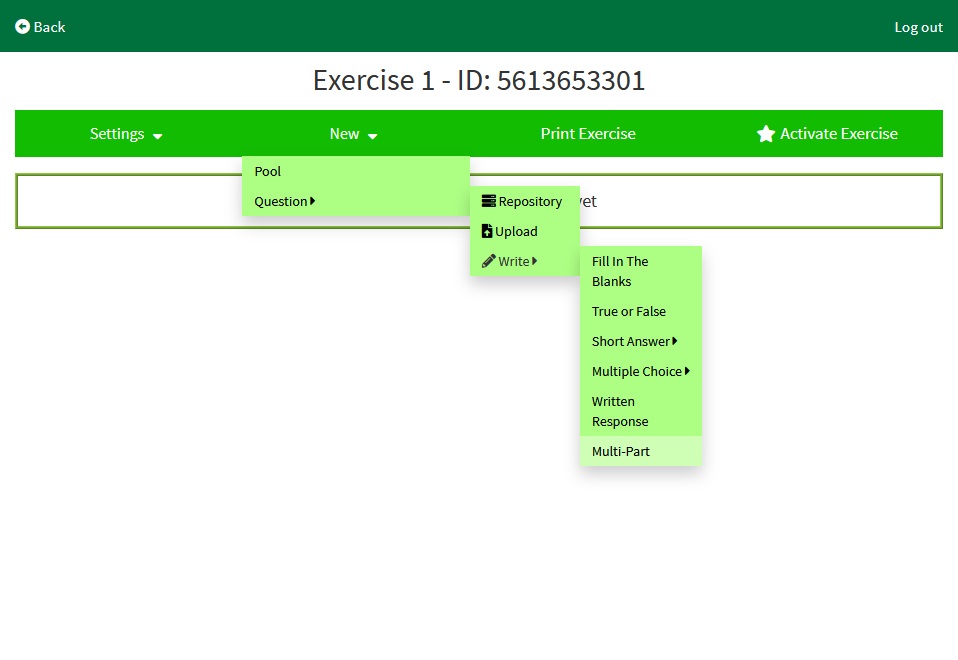 This button row is a simplified menu that is found on the Edit page and Pool page. The same navigation can be used to access the question part writing pages.