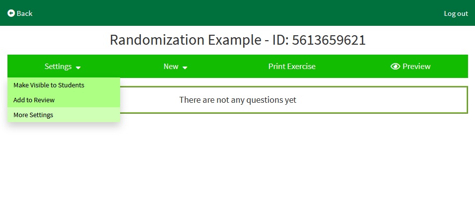 From here, you can preview the exercise to see how selecting 10 questions from a pool of 1 looks.