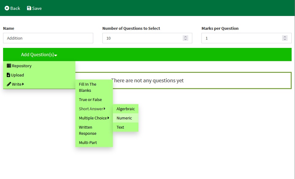 In this tutorial, the new Pool is named Addition, and there will be 10 questions to select.